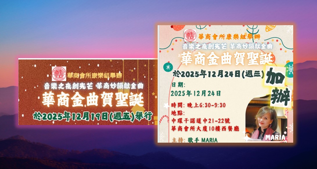 華商金曲賀聖誕 12月24日 星期五晚(平安夜)加辦一場