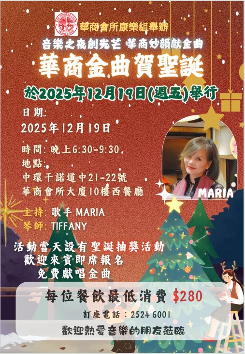 華商金曲賀聖誕 12月19日 星期五晚 舉行