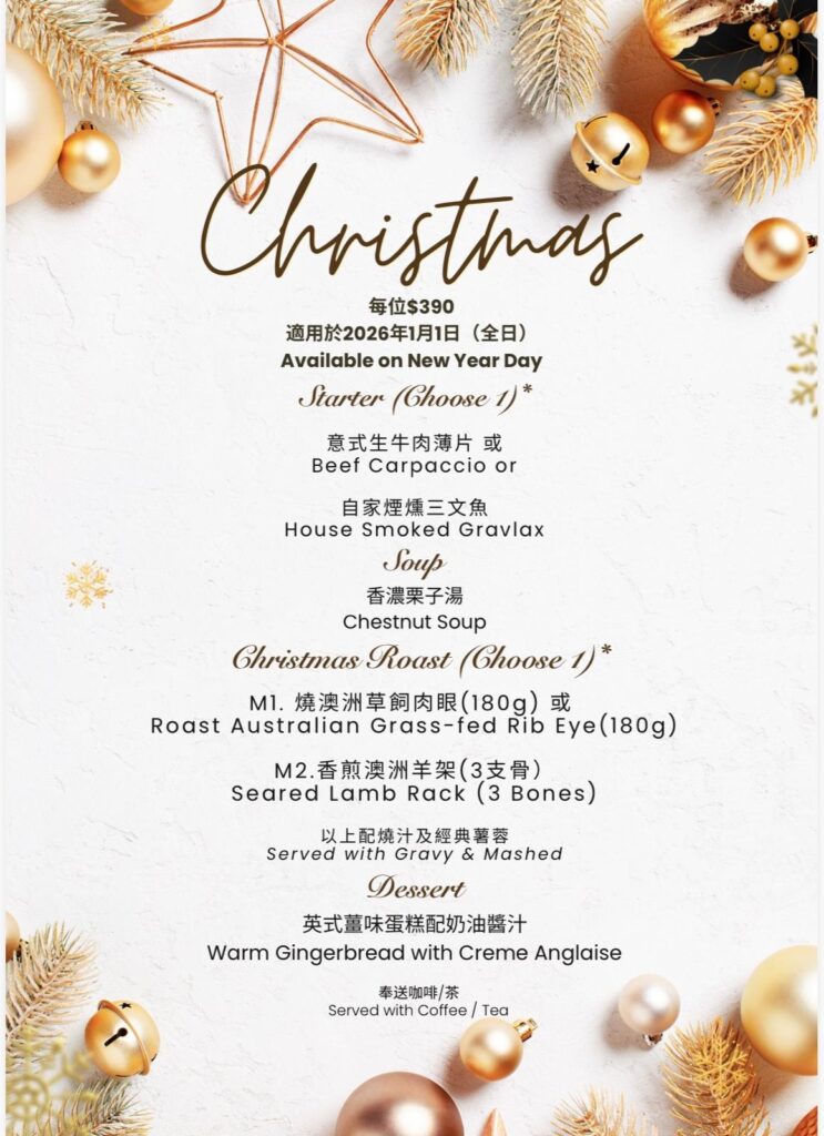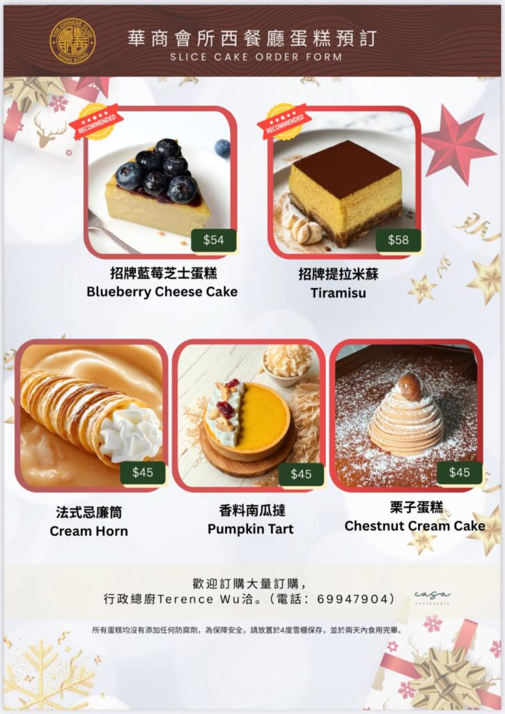 Uncategorized最新通告會員活動會員活動紀錄餐飲信息[元旦日]西式特別套餐及節日外賣餐單 – 歡迎預訂 David Chau2 個月 ago2 週 ago01 mins [元旦日]西式特別套餐供應時段如下:・2026年1月1日(全日)10樓 及 13樓 供應 節日外賣餐單訂購熱線:華商會所接待處 25246001西餐廳⾏政總廚 (Terence Wu) 69947904 文章導覽 Previous: 《馬會電子嘉賓入場證及廂房訂座取消新安排通告》Next: 會員免費借用流動充電器通知